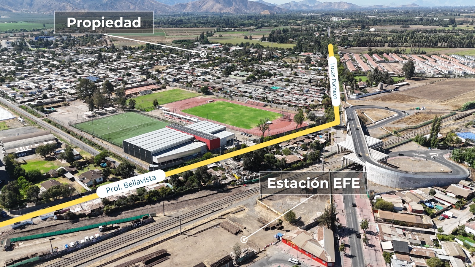 Ubicado a menos de 1 kilómetro de la futura Estación EFE del Tren Alameda–Melipilla. Las obras comenzaron en noviembre de 2025 y el primer tramo operativo está proyectado para fines de 2027, lo que posiciona este terreno como una inversión de alta proyección de valorización en el corto plazo.