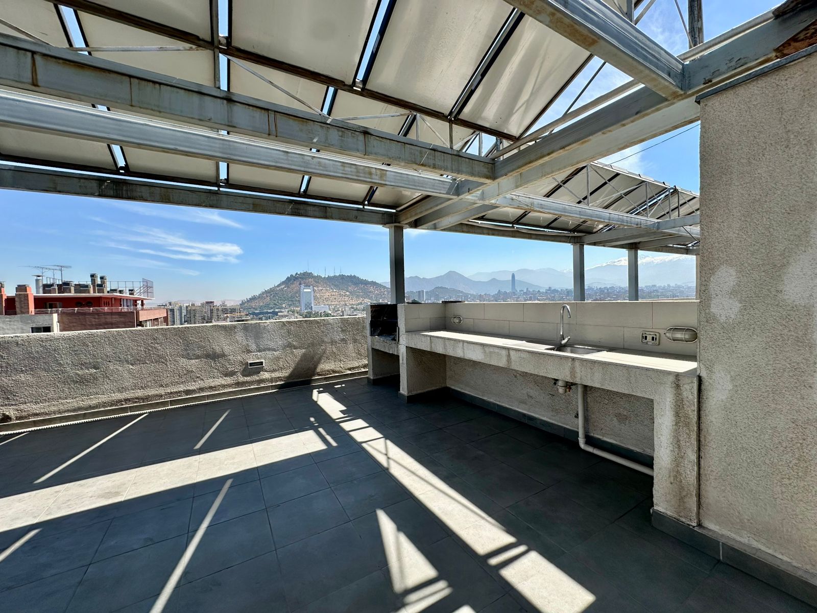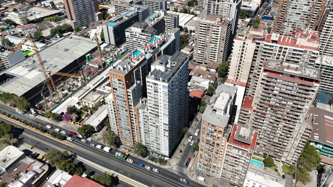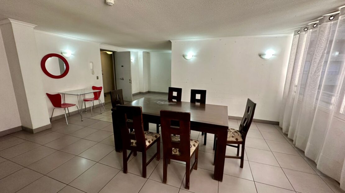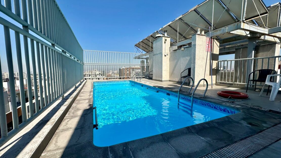 El edificio dispone de completos espacios comunes: piscina, gimnasio, lavandería, sala de eventos y quinchos panorámicos, además de conserjería y accesos controlados.